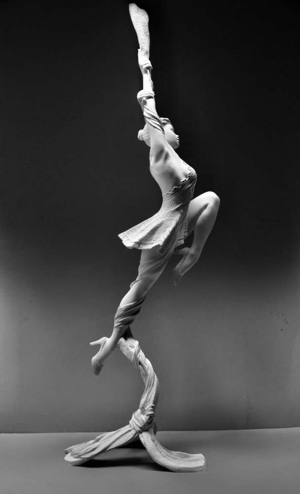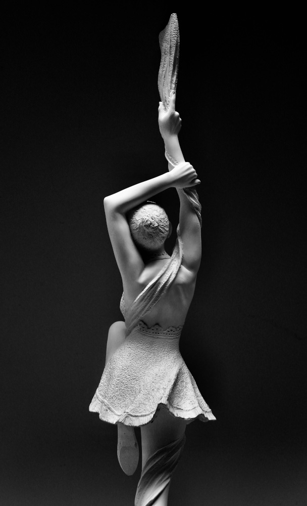 Cette œuvre vient défier la gravité tout en donnant ce mouvement aérien, cet instant figé entre chute et ascension.
