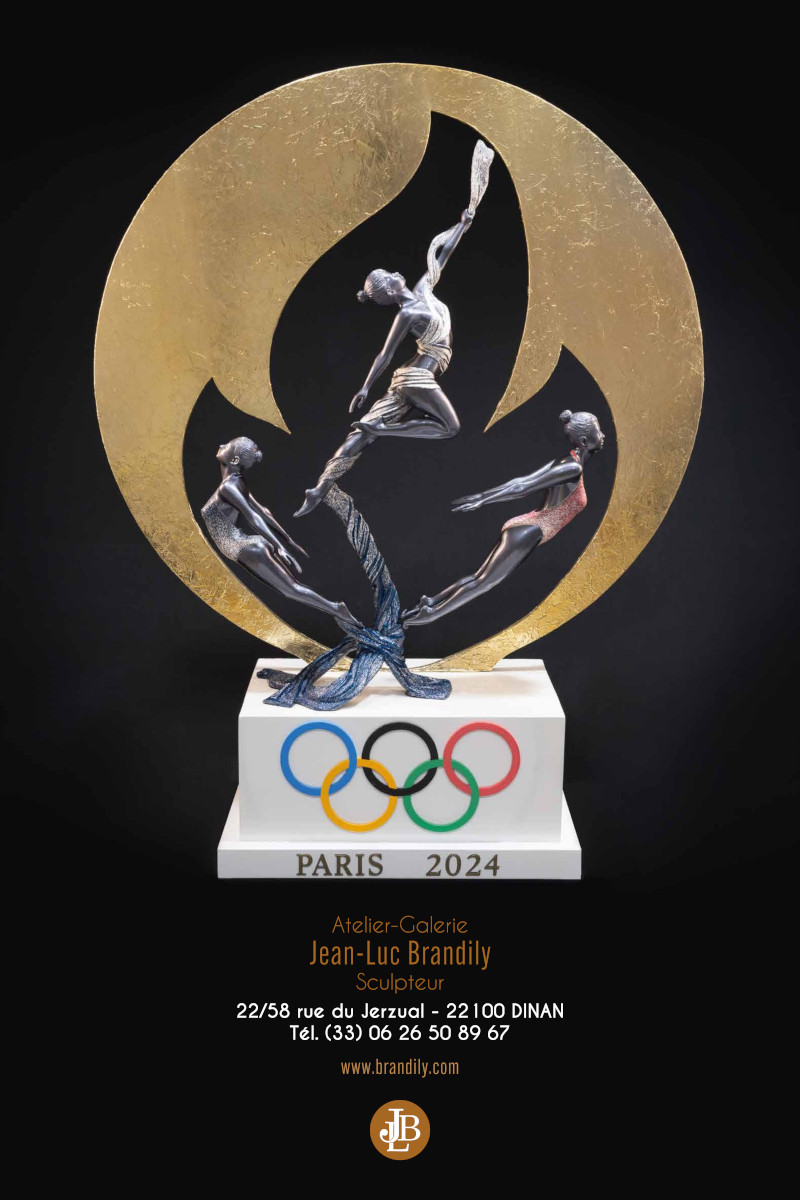 Depuis toujours il sublime la femme au sens le plus noble ; la femme dans toute sa grâce, sa beauté, son élégance… pour le plus grand bonheur d’admirateurs et de collectionneurs un peu partout dans le monde. Voilà plus de 40 ans qu’il est non pas à la tâche mais tout à son Art avec toujours le même souci du dépassement et de la perfection. Une fois encore Jean-Luc Brandily n’a pas hésité à s’inspirer d’une actualité brûlante, avec tout prochainement les Jeux Olympiques à Paris, pour offrir à nos regards une composition dont il a le secret et qui va faire l’admiration en France de milliers de visiteurs du monde entier ! Saint-Exupéry disait « fais de ta vie un rêve, et d’un rêve une réalité… » et bien c’est chose faite . On ne peut séparer l’artiste de l’homme attaché à ses racines, à son terroir qu’il a quitté tout jeune pour une école d’Art prestigieuse avant de s’installer dans son emblématique atelier-galerie du Jerzual à Dinan. Parler de l’oeuvre de l’artiste n’est pas suffisant si on ne s’attache pas à l’homme. Jean-Luc c’est la simplicité et l’humilité personnifiées et lorsqu’il se confie sur son désir le plus ardent, celui de retrouver la campagne qui l’a vu naître et grandir, on ne peut que le comprendre et le suivre avec une certaine émotion.